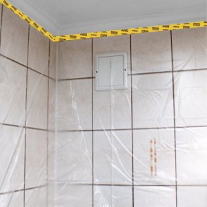 Washi páska s elektrostatickou malířskou fólií, pro zakrytí a maskování velkých celoplošných ploch (např. okna, kuchyňské linky, obklady, tapety); pro použití na mnoha podkladech v interiéru i exteriéru.
